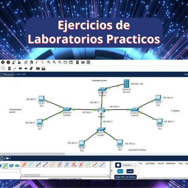 ✅ Laboratorios prácticos de protocolos esenciales como VLAN, OSPF, DHCP, NAT, ACL, RIP, EIGRP, BGP, STP, VTP, EtherChannel y más.