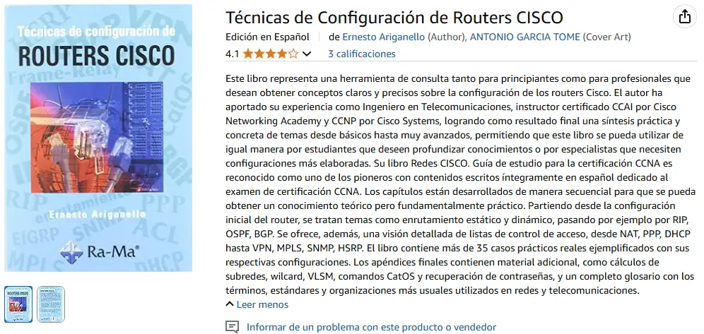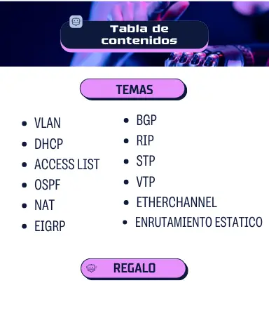 Cada tema se presenta con teoría breve, comandos claros y más de 35 casos prácticos explicados con detalle. Aprenderás desde cómo conectarte a un router hasta cómo configurar protocolos como OSPF, NAT, BGP, VPN, ACLs y muchos más.